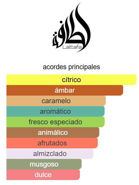 Notas: azafrán, jazmín, ámbar gris, almizcle, resinas, cedro.