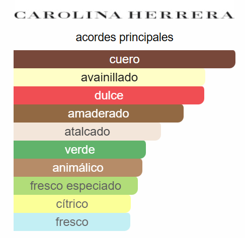 Notas: cuero, vainilla, azúcar, ámbar, bergamota, hierba.