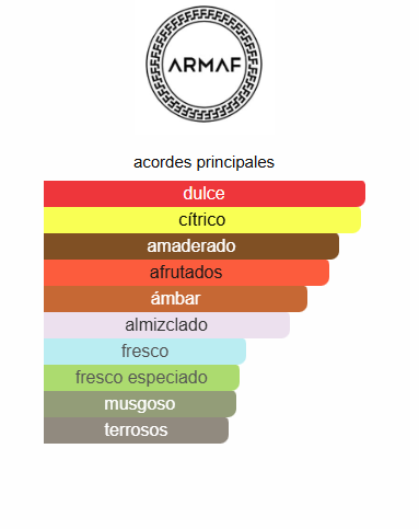 Un aroma cítrico especiado al inicio, que rápidamente evoluciona a una mezcla masculina de lavanda e incienso con un toque dulce-amaderado. El ambroxan y la tonka le dan un fondo seductor, limpio y enorme proyección. Es moderno, elegante y llamativo.
