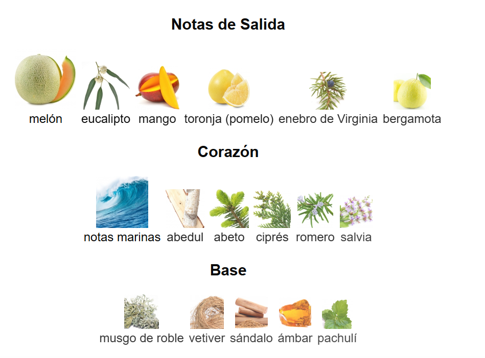 Ideal para: Hombres que buscan un aroma fresco, ligero y versátil que refleje seguridad y dinamismo.