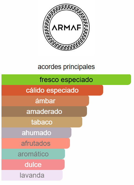 Notas: manzana, canela, cuero, ámbar, incienso, madera de gaiac.