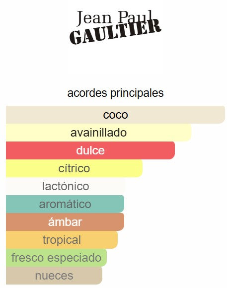 Notas: coco, bergamota, haba tonka, ámbar gris, vetiver.