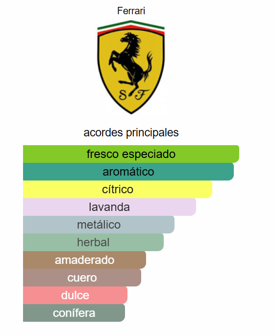 Notas: limón, naranja, lavanda; corazón de nuez moscada, geranio y canela; fondo de sándalo, cedro y almizcle.